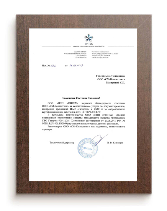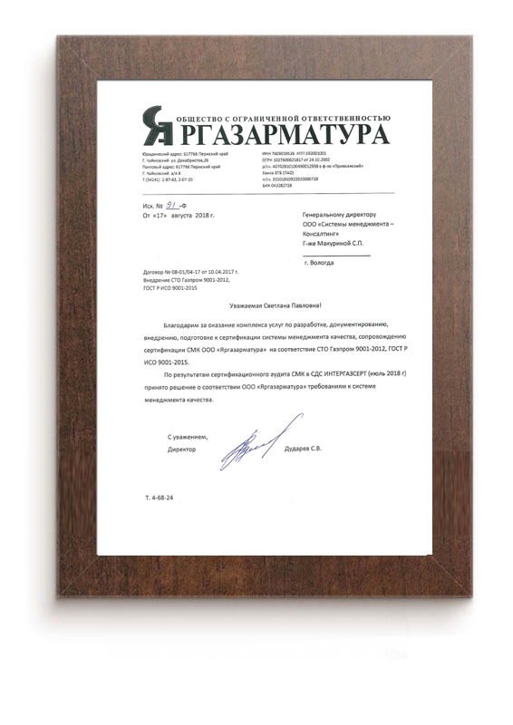 Первый сертификат Заказчика в СДС ИНТЕРГАЗСЕРТ